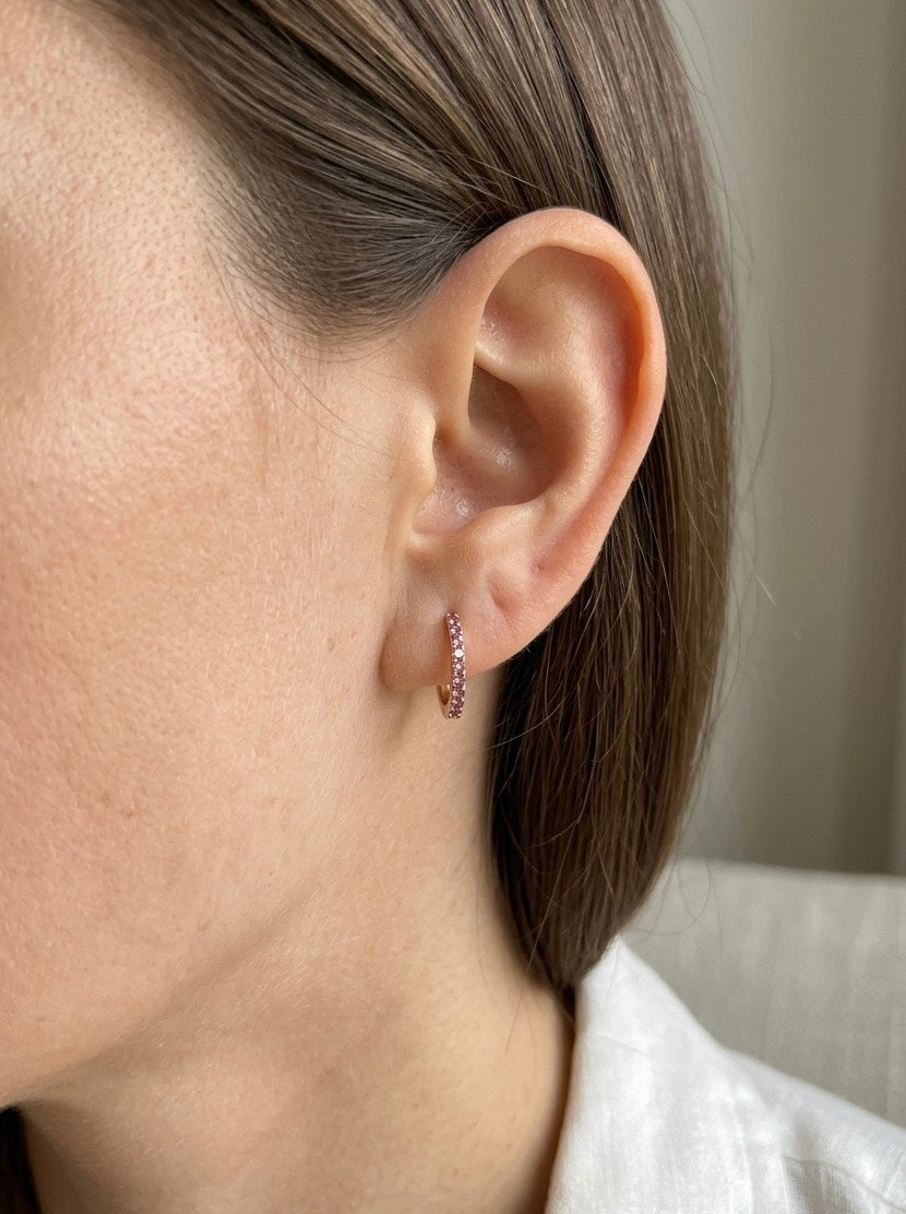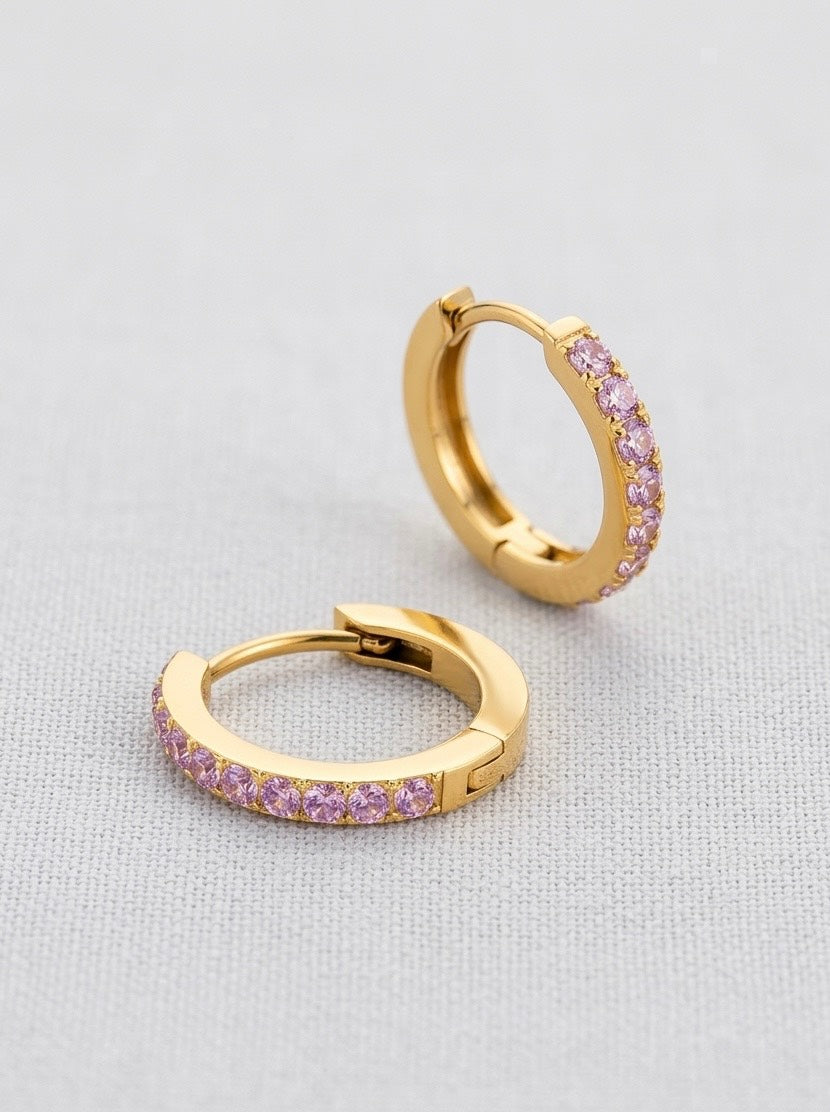 "Pink Huggies" smalkie riņķu auskari ar 14K Zelta pārklājums
