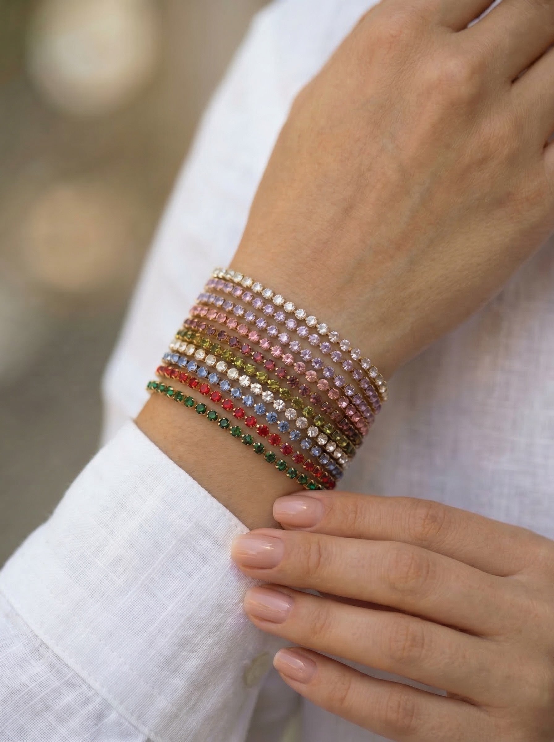 Mūsu "Petite" rokassprādze ir radīta, lai kļūtu par Tavu mīļāko ikdienas rotu. Tās klasiskais "Tennis" dizains sastāv no nepārtrauktas mirdzošu kristālu rindas, kas fiksēta izturīgā un hipoalerģiskā medicīniskā tērauda pamatnē. Tikai 2 mm platumā, tā izskatās neticami trausla un eleganta, taču patiesībā ir gatava visiem Taviem dzīves piedzīvojumiem.